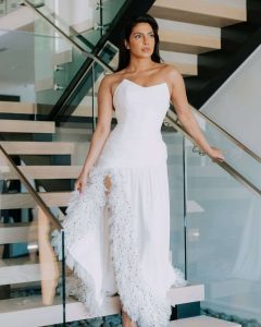 सार्वजनिक भएका तस्बिरहरूमा उनी आकर्षक गाउनमा रेड कार्पेटमा उपस्थित भएको देखिन्छ। उनको ग्ल्यामरस लुक र स्टाइलले सामाजिक सञ्जालमा व्यापक चर्चा पाएको छ।