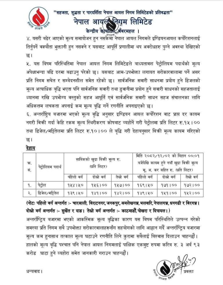 पेट्रोलियम पदार्थमा उच्च मूल्य वृद्धि , इरान युद्धको असर नेपालमा पनि